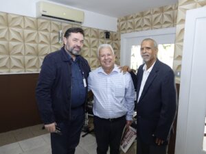 El director de Primicias, Alex Jiménez, con Néstor Estévez, una voz noroestana, hijo de Sabaneta, Santiago Rodríguez, analista invitado de Primicias.Estévez siempre muy animado con su Abrazo Sabanetero.