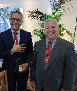 «Este logro no solo refleja  el paso del tiempo, sino también la dedicación, el esfuerzo constante, el compromiso con la verdad, la excelencia periodística y la ética que han caracterizado  a su equipo a lo largo de estas más de tres décadas», le expresa Juan Carlos Carfneito, presidente ejecutivo de Banesco Banco Múltiple, a Alex Jiménez. director del periódico Primicias.