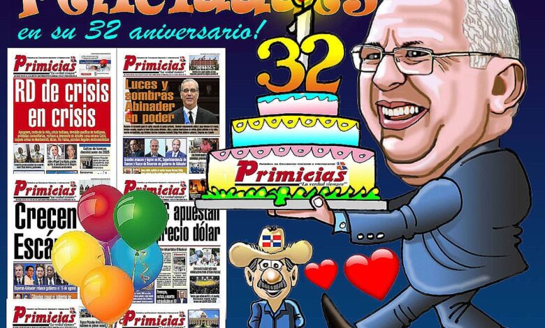 Diferentes sectores y personalidades de la nación resaltan los aportes del periodico Primicias a la defensa del periodismo profesional, ético,  libre e independiente, su pluridad y a la democracia politica y económica de  la República Dominicana y el mundo en sus 32 años de existencia.
