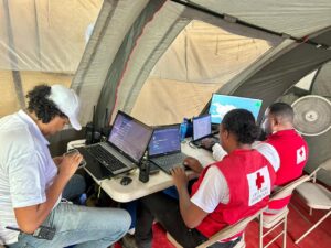 En el municipio de Montellano, provincia Puerto Plata, una de las zonas con mayores afectaciones producto de las inundaciones, se ha establecido un centro de coordinación móvil con el despliegue de un equipo de coordinación y respuesta que brinda apoyo a las filiales de la región.