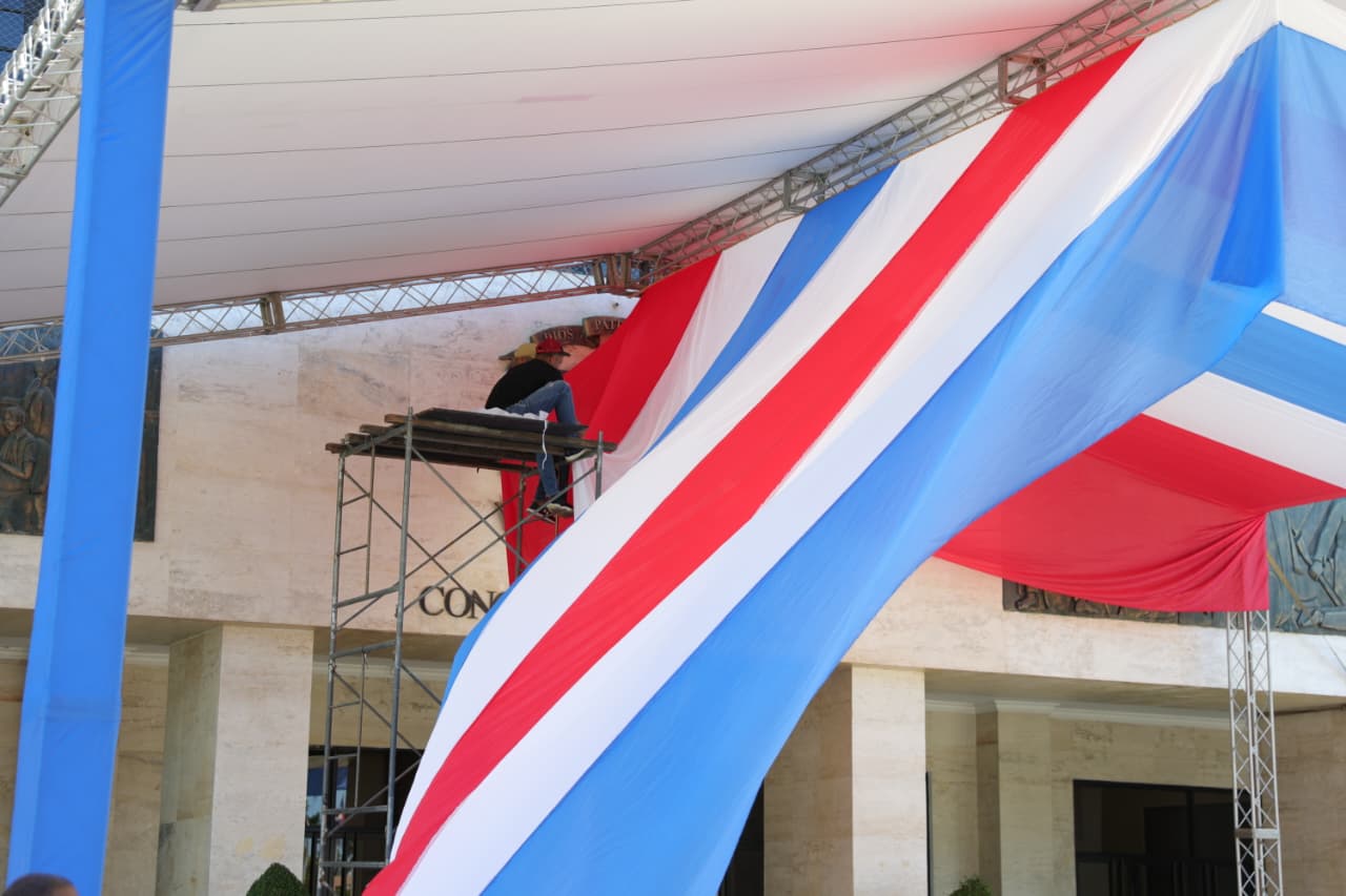 Entre los espacios habilitados se destaca la carpa por donde el primer mandatario ingresará a la sede del Congreso Nacional, luego de recibir los honores militares correspondientes a su alta investidura, donde será recibido por una comisión encabezada por el presidente del Senado, Ricardo de los Santos, y de la Cámara de Diputados, Alfredo Pacheco y otros senadores y diputados.