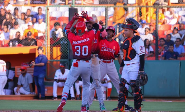 Por los rojos, Escobar bateó de 5-2, con cuadrangular, dos producidas y una anotada; Tapia, de 4-2, con dos anotadas, transferencia y dos bases robadas; De la Cruz, de 2-1, con una impulsada, una anotada, tres boletos y una base robada, y Sócrates Brito, de 4-1, dos bases por bolas. Por los taurinos, Jiménez se fue de 5-2, con dos empujadas, y Alcántara, de 4-1, con doble, anotada y base por bolas.