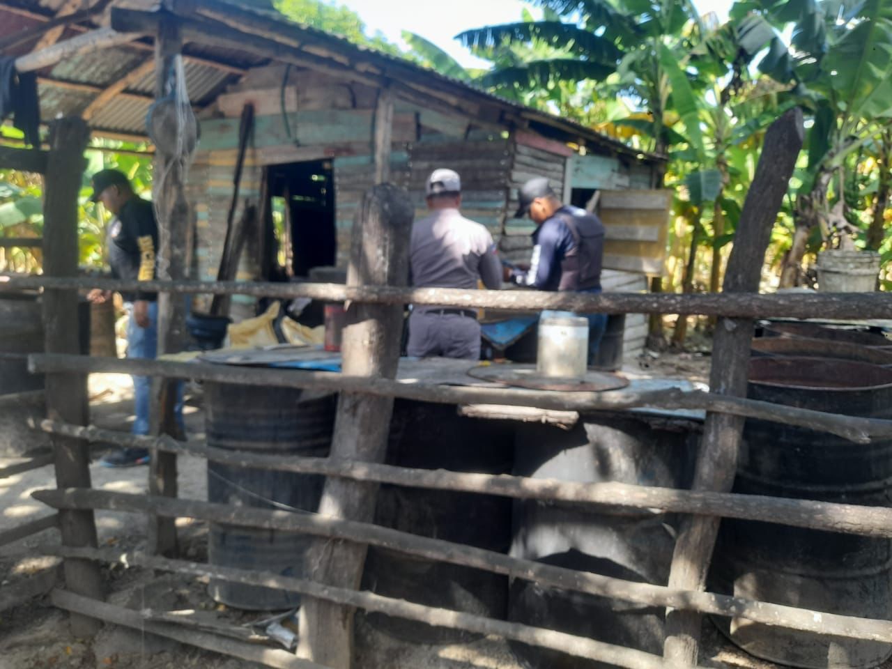 El Ministerio Publico y la Policía Nacional desmantelaron el 8 de noviembre de 2023 un laboratorio clandestino de bebidas alcohólicas adulteradas en el Batey Angelina, San Pedro de Macoris, decomisando dos tanques con capacidad para 50 y 60 galones.