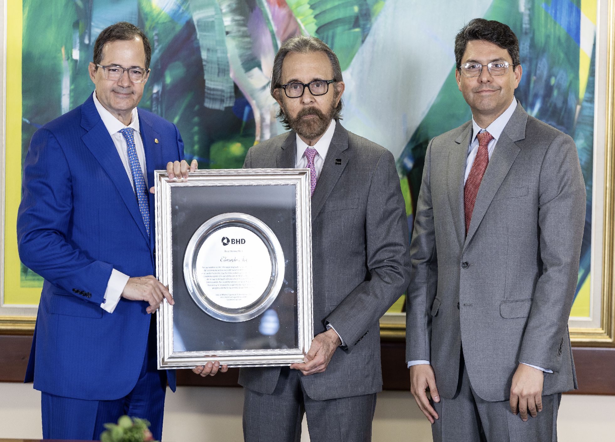 La placa de reconocimiento fue entregada por Steven Puig, presidente del Banco BHD, y Guillermo Méndez, vicepresidente ejecutivo de Banca Corporativa y Empresarial de la entidad.