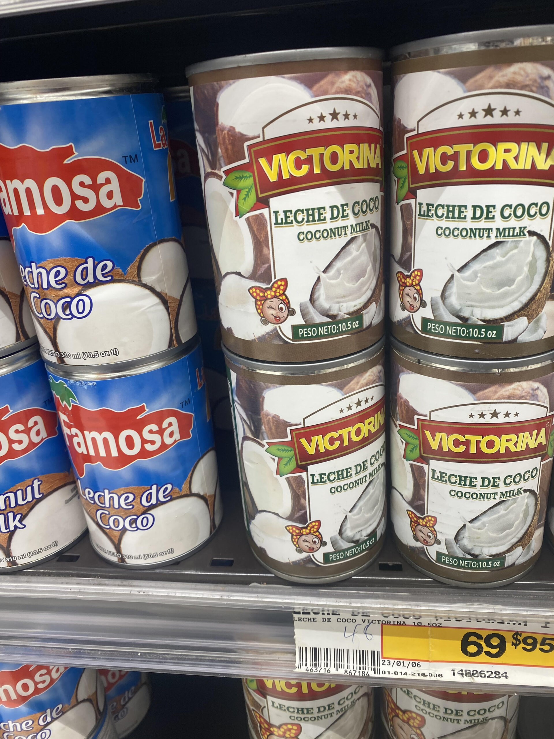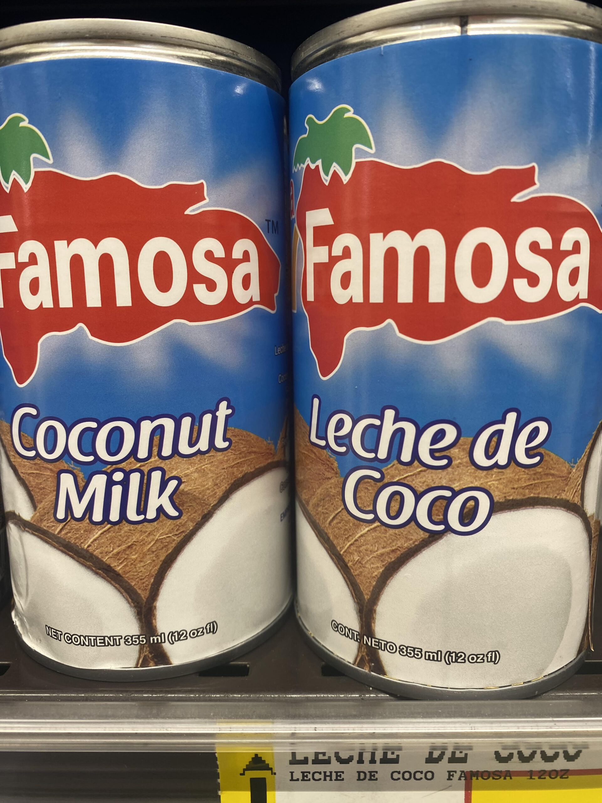 De Peravia Industrial, con su maíz con coco, leche de coco, crema de coco, piña colada, habichuelas con coco, guandules verdes, con coco. Esa empresa banileja promueve en sus recetas el flan cremoso con coco, pulpas de coco